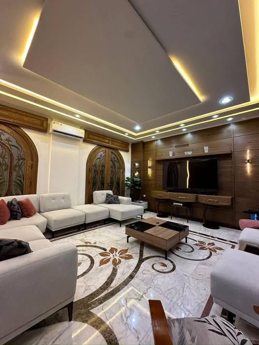 جبسن بورد لأرض غرانيت مصري مبولد خشب سنديان بالكامل مع شوفاجات تدفئة مركزية مع شاشات بلازمة عدد..2..