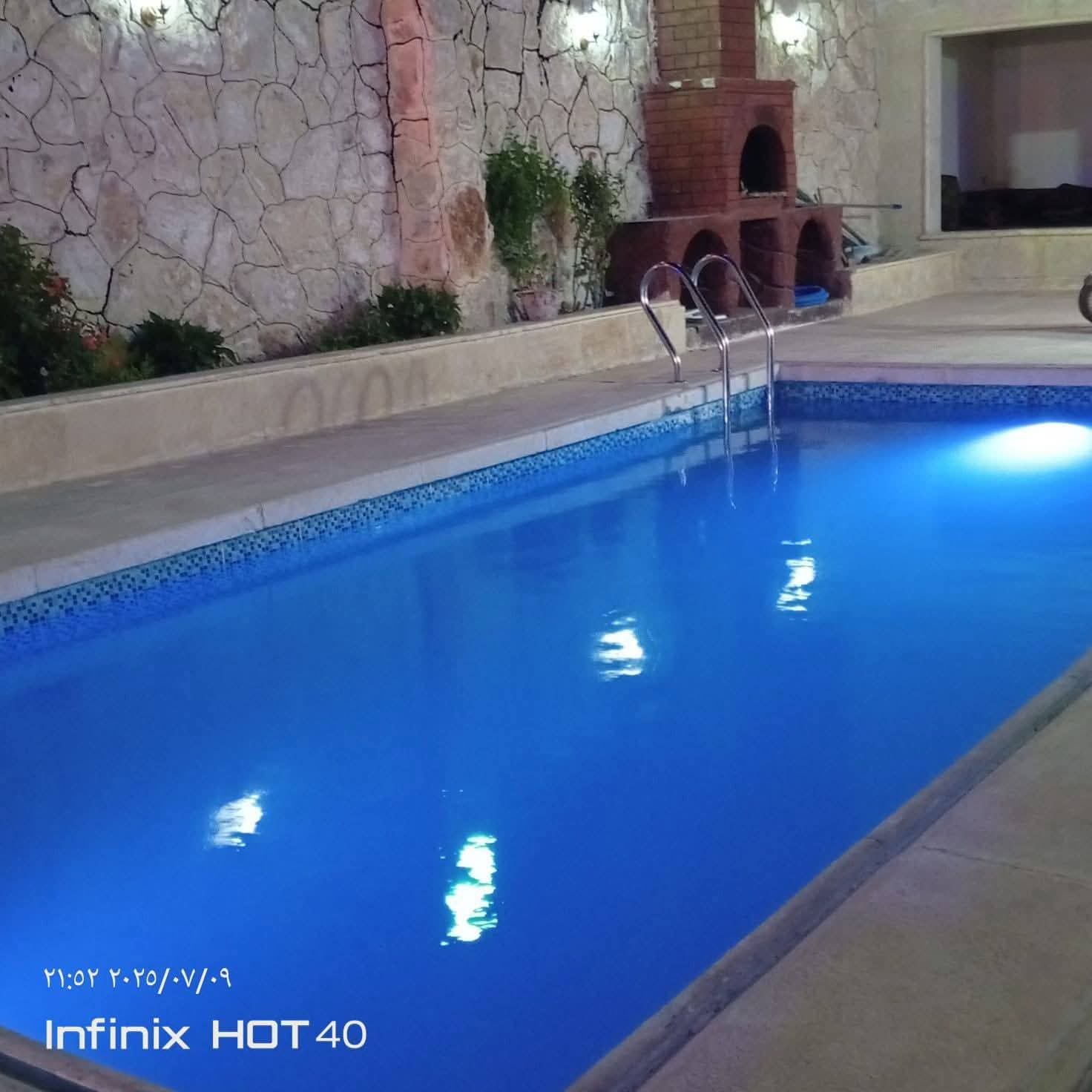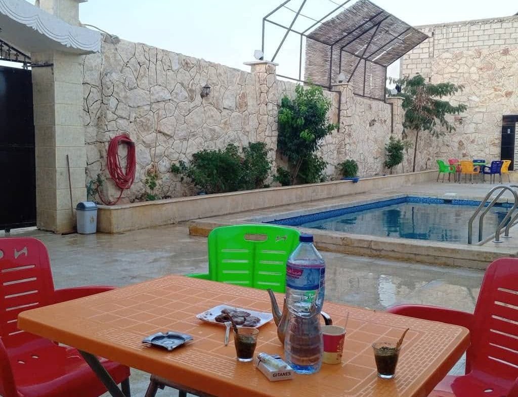 فراغة اسهم ضمن مدينة حلب الجديدة بنيامين تبعد عن دوار الموت 1 كيلو قبل كازيه الجلبي ب300 متر طريق دخول الى المزرعه من حلب الجديدة عام ومزفت وطريق الشام خاص الحرش الى المزرعه مخدمة من كهربا وصرف صحي ومياه مساحه 634 متر عمار 140متر 4غرف ومنافع ومألف من مسبح مفلتر ومشالح خاصة في المسبح وايضآ باب كبير وكراج يسع الا سيارة واحدة 1 مساحة المسبح طول 10 عرض 5 غمق يبدآ من 1 الى 2ونصف ومفلتر ومخدم تصلح المزرعه الى السكن العائلي والى مشروع استثماري وايضآ تصبح الى اجار صيفي للترفيه