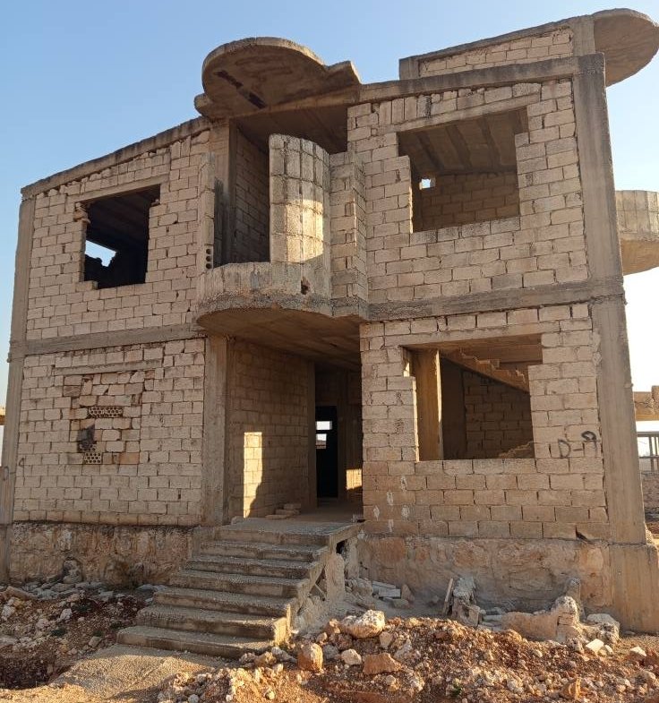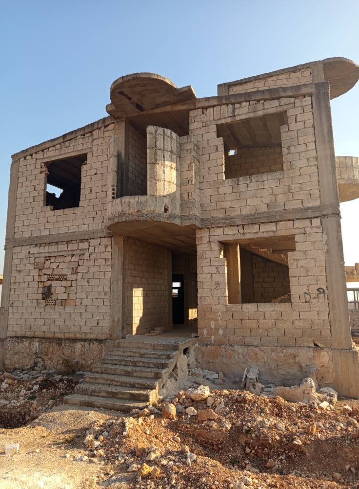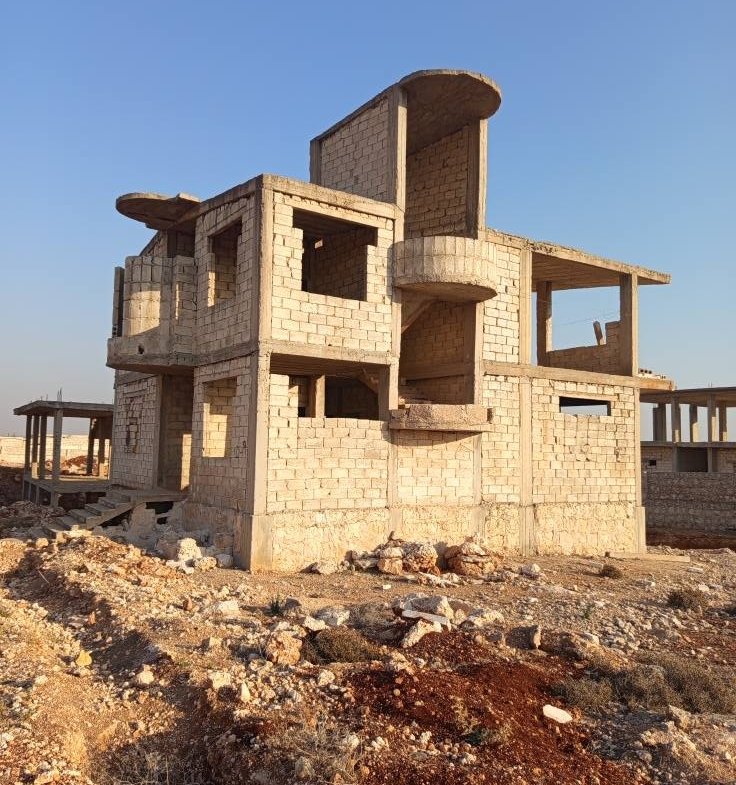 مساحة ٦٦٠متر مربع طابقين كل طابق ٣ غرف ومنافع عمار بيتوتي ضد الزلازل مساحة البناء ١٥٠ متر بجمعية قصر الحير جمعيات كفرناها تبعد عن حلب ١١ كم شهادات تخصص رقم القطعه