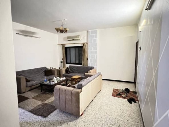 #الوصف : مؤلفة من ثلاثة غرف ومطبخ أميركي مفتوح ع محرك ومنافع وبرندة ع الشارع جنوبية